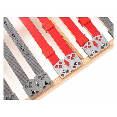 Sistemele de prindere a lamelelor sunt suspensii/ amortizoare TPEE – SBS caracterizate de o elasticitate marita dotate cu butonul de reglare a rigiditatii + - care permite sa faceti zona lombara mai rigida sau mai moale în functie de greutatea și nevoile dumneavoastra. Ele reduc tensiunea din lamele si se adapteaza oricarei saltele cu continut de latex, spuma poliuretanica sau cu memorie, mentinand-o intr-o pozitie ferma. Se flexeaza și se inclina urmand diferitele miscari ale corpului în timpul noptii.